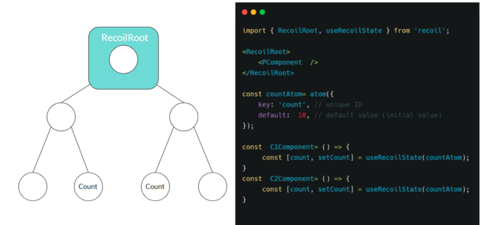 Finally I will introduce useRecoilState, where we can easily achieve this by creating a shareable subscriber unit of state using atoms. To take benefits of the Recoil API we need to wrap the parent component in RecoilRoot.