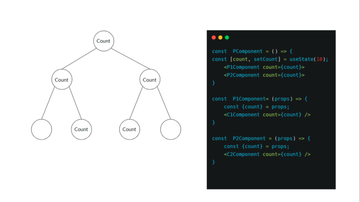 - Here we have a simple level tree, but what if we have more, say 4 or 5 levels? Prop drilling through so many levels will make the code difficult to navigate